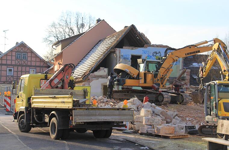 Für die ehemalige Schule in Pfaffendorf hat die letzte Stunde geschlagen. Der Abriss hat begonnen. An dieser Stelle soll ein größerer Spielplatz entstehen.