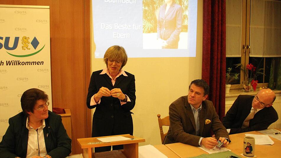 Als Landratskandidat blickte Schneider auf die bevorstehenden Kommunalwahlen, die "neun bis zehn neue Bürgermeister und einen neuen Landrat bringen werden". Deshalb sei es wichtig, dass die CSU in Ebern am Ruder bleibe. "Das wird kein Selbstläufer, dazu müssen viele Gespräche geführt werden", gab er der Kandidatin mit auf den Weg.