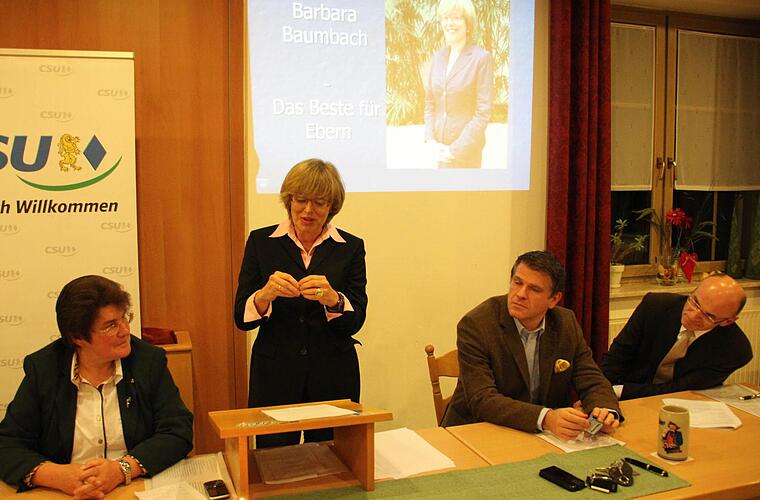 Wer versagte denn seine Zustimmung? Mit 47 von 48 Stimmen wurde Barbara Baumbach am Donnerstagabend von den CSU-Mitgliedern als Bürgermeister-Kandidatin ins Rennen um die Nachfolge von Robert Herrmann geschickt, der nach 18 Jahren im Amt aus Altersgründen nicht mehr antreten darf. Und diese Zäsur wurde in den Frankenstuben auch mehrfach angesprochen, da nach Meinung von Landratskandidat Wilhelm Schneider "eine Ära zu Ende geht".