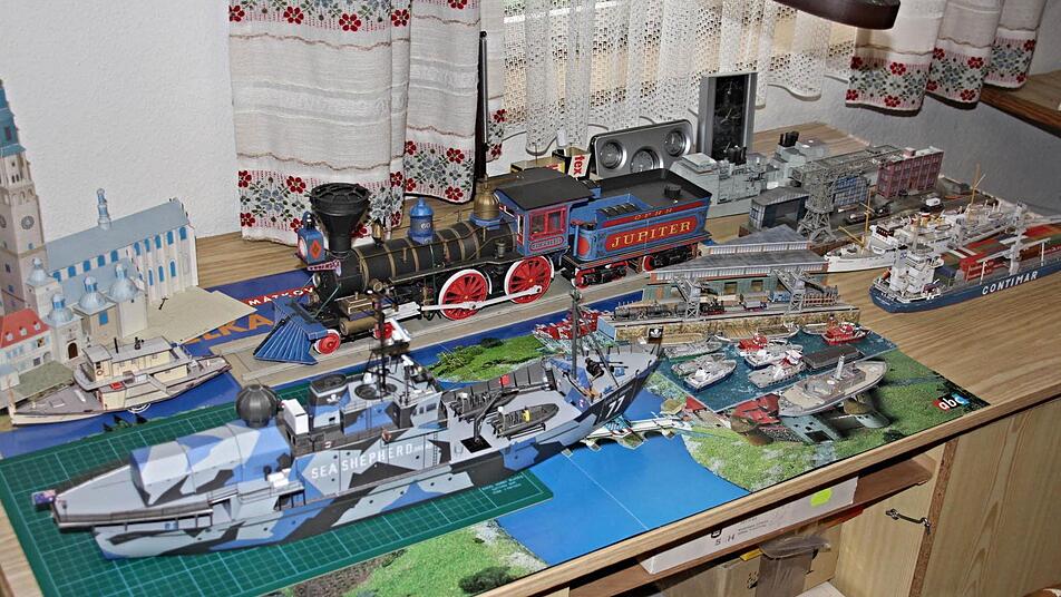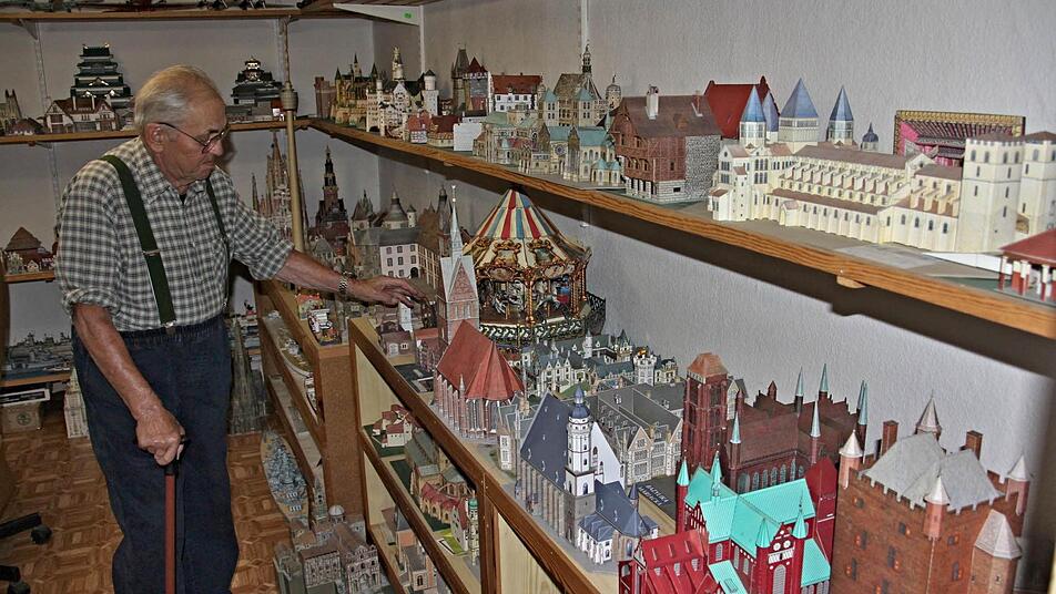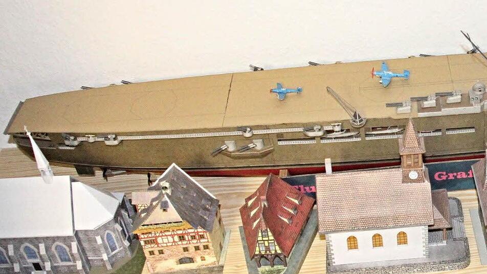 Schon als Wolfgang Beilner seine Haustür öffnet, fällt der Blick auf die, wie er sie nennt, Architekturmodelle. Bei einem kurzen Rundgang durch Erd- und Obergeschoss seines Anwesens wird man von zahllosen Modellen aller Art umfangen. "Mein erstes Modell war der Flugzeugträger ,Zeppelin'", sagt Beilner und zeigt dieses vor. Geboren ist der Modellbauer in Neutitsche im Ostsudetenland, im Grenzgebiet von Polen, der Slowakei und der Tschechei. Seine Heimat musste er 1945 verlassen und kam zunächst nach Sulzthal bei Hammelburg.