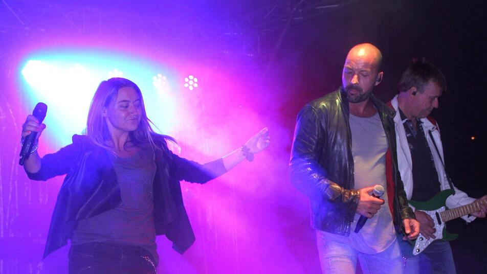 Ein professionelles Sound- und Lichtsystem sorgte für die richtige Atmosphäre. Mittendrin machte die Bayern-1-Band ihre "Radioshow 2017". Die Musiker bestehen im Wesentlichen aus Mitarbeitern des Ra-diosenders. Die sieben Musiker haben Spaß am Mikrofon, nicht nur im Studio, sondern auch live vor Publikum. Hunderte von jungen und älteren Besuchern standen vor der Bühne, als Sängerin Tini Zettler über die Bühne fegte und zum Mitmachen anfeuerte. Im Duo sang sie öfters mit Florian Pilz.