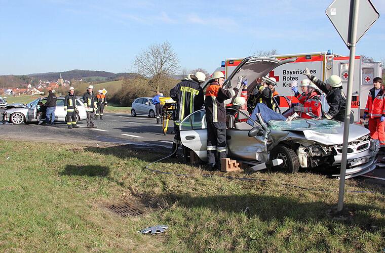 Der Verkehr wurde einseitig an der Unfallstelle vorbeigeleitet. Im Einsatz waren Feuerwehrleute aus Ebern, Pfarrweisach,Kraisdorf und Burgpreppach. An den beiden Autos, die am heftigen Zusammenprall beteiligt waren, entstand Totalschaden.