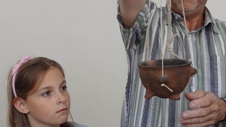 Ihr Team hatte auch einen echten Steinzeit-Experten aufgetrieben: Manfred Künzel aus Lahm. Immer wieder zieht der Besitzer des Brillenladens in Ebern selbst zum Buddeln nach Dingen los, die von Vorfahren tief unter der Erde noch zu finden sind. Sein (Erfahrungs-)Schatz ist groß.