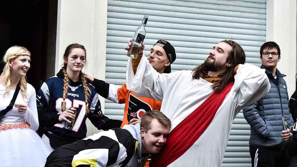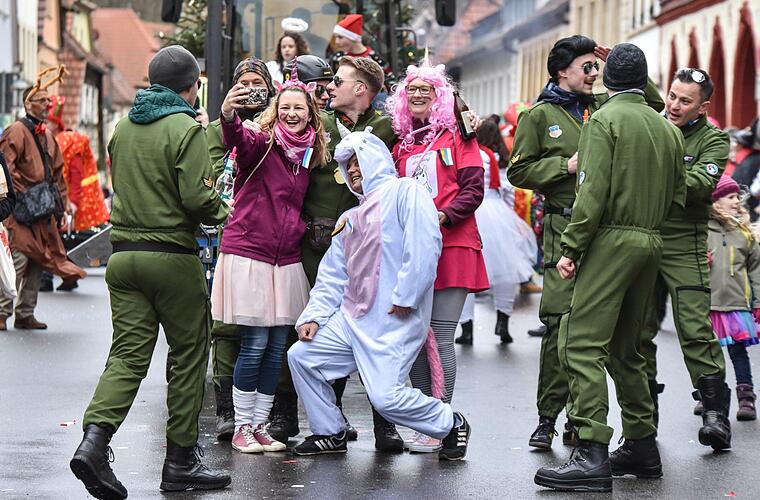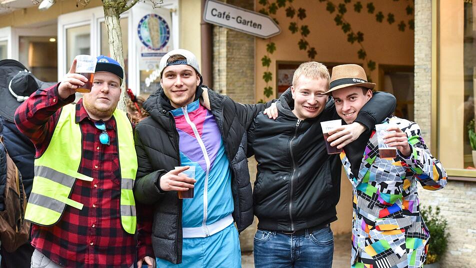 Eine Faschingsparty unter grauer Wolkendecke: Die Eberner ließen sich ihre Faschingsstimmung auch durch trübes Wetter nicht vermiesen. Über 40 Gruppen waren beim Gaudiwurm unterwegs - politische Seitenhiebe blieben dabei jedoch rar.