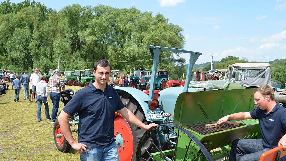 Mit einer Kurbel bringt Michael Büttner aus Bramberg den Motor seines antiken "Allgaier Verdampfers" zum Laufen. Er ist einer von etwa 80 Schleppern, die sich auf dem Festplatz in Limbach versammelt haben. Bereits zum siebten Mal treffen sich die Liebhaber alter Fahrzeuge im Eltmanner Stadtteil. "Wir sind schon Oldtimer-Fanatiker", gesteht der Vorsitzende Christoph Fösel, der vor sieben Jahren gemeinsam mit seinem Stellvertreter Michael Wittig das Treffen ins Leben rief.