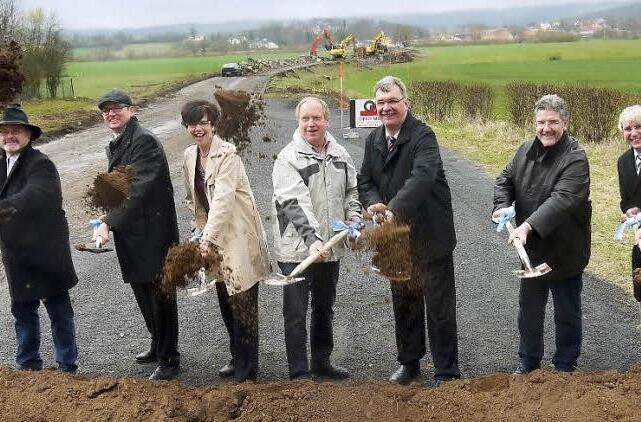 Während im Hintergrund die Bagger der beteiligten Baufirmen noch eifrig am Werk waren, gab sich vorne die Prominenz die Ehre: Mit dem festlichen Spatenstich hat am Freitag offiziell der Ausbau der Staatsstraße 2278 zwischen Kaltenbrunn und Untermerzbach begonnen. Es war der letzte Handstreich in dieser Arbeitswoche.