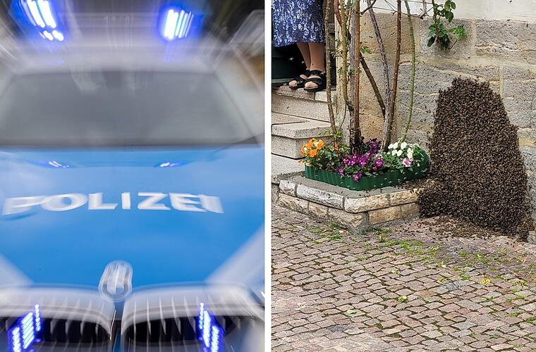 In der Innenstadt von Ebern hat ein "spektakuläres Naturphänomen" am Wochenende einen Ausnahmezustand ausgelöst, wie die Polizei meldet. Ein ganzes Bienenvolk war in der Stadt unterwegs, weshalb es sogar zu Verkehrsbehinderungen kam.