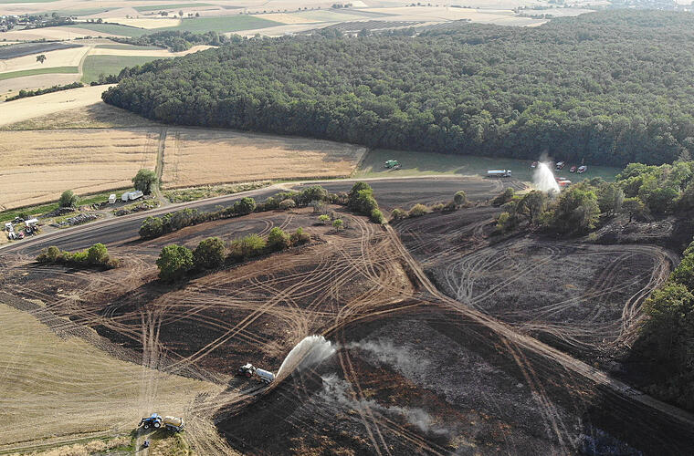 Aus diesem Grund seien zusätzliche Einsatzkräfte hinzugerufen worden, um die Kräfte vor Ort abzulösen. Abgesehen von der Hitze, konnte der Flächenbrand gut gelöscht werden. Da die Felder bereits abgemäht waren, konnten die betroffenen Bereiche ohne Hindernisse großflächig bewässert werden. Mehrere Landwirte halfen bei den Löscharbeiten.