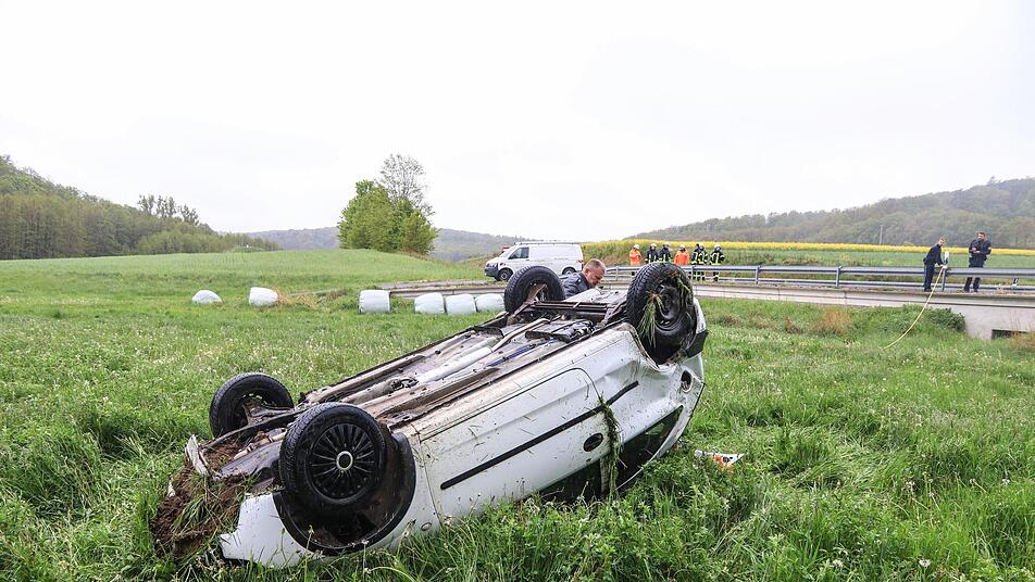 Bei einem Unfall im Unterfranken hat sich ein Opel Corsa am Samstag mehrfach überschlagen. Das Unfallauto kam schließlich in einer Wiese zum Stehen.