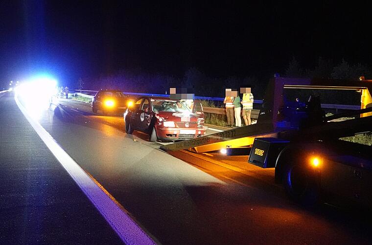Beim Eintreffen der Feuerwehr war die Fahrbahn durch die bereits vor Ort befindlichen Polizeistreifen voll gesperrt worden. Obwohl das Auto stark beschädigt wurde, blieben die Insassen unverletzt.