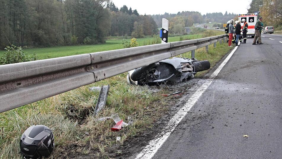 Der Mann trug nur leichtere Verletzungen davon und wurde vor Ort vom Rettungsdienst des Roten Kreuzes versorgt. An seinem Krad, einer neuwertigen schweren BMW, entstand nach Angaben der Polizei Totalschaden in Höhe von mehr als 10 000 Euro. Das Motorrad ging nach dem Anstoß an der Leitplanke in Flammen auf. Der Brand konnte, noch vor dem Eintreffen der Feuerwehren Jesserndorf und Ebern, von einem Verkehrsteilnehmer mit einem Handfeuerlöscher gelöscht werden.