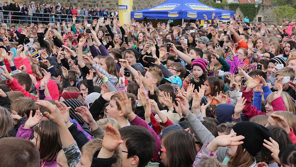 Schüler und Lehrer waren jedenfalls gleichermaßen angetan von der "besten Pause aller Zeiten" (Sido) in Ebern. Zum Rap-Star kommen durften alle Kids, die der Realschule zum Sieg verholfen hatten, und das waren gut 1500, die auf dem zum Pausenhof und Festivalgelände umfunktionierten Großparkplatz an der Stadtmauer eine bemerkenswerte Sido-Show erlebten.