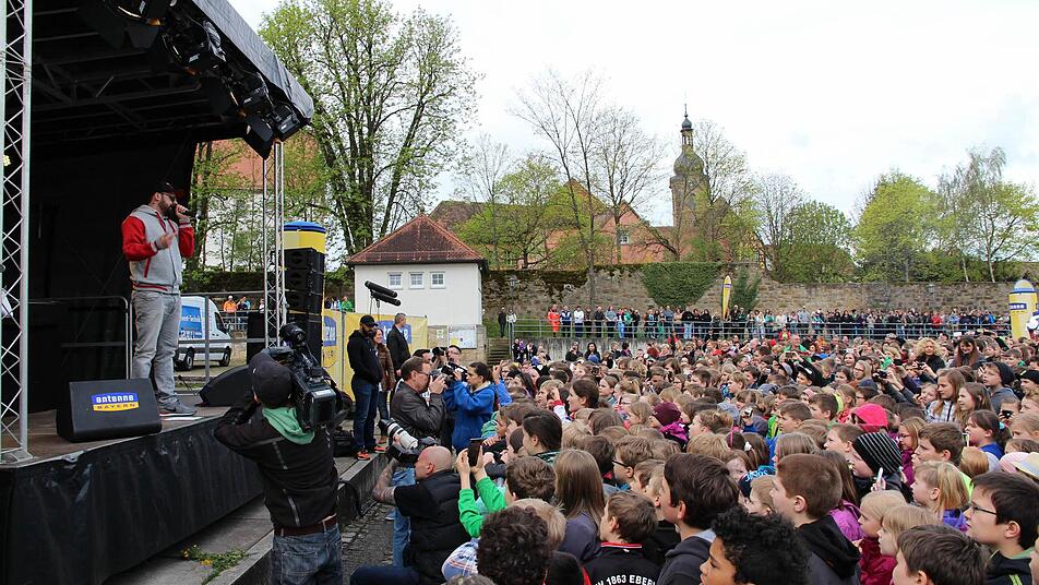 Der Radiosender Antenne Bayern hatte das Kurz-Gastspiel möglich gemacht: In der Online-Abstimmung für das Pausenhof-Konzert mit Sido lieferten sich die Eberner Realschule und das Kronacher Frankenwald-Gymnasium ein Kopf-an-Kopf-Rennen, das Ebern mit einer Handvoll Stimmen für sich entschied.