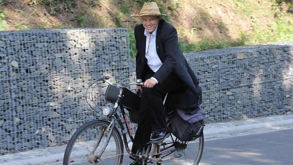 Udo Reg auf dem Fahrad--- mit dem bin ich 1952 In die Schule gegangen in Untermerzbach (Jetzt Rathaus)