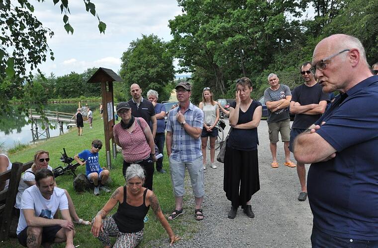 Bei einem Ortstermin zusammen mit den Badefreunden am Samstag am "Gossi-See", wie er im Volksmund genannt wird, rechtfertigte Bürgermeister Wolfgang Borst sein Vorgehen und machte auch Vorschläge, wie der See weiterhin als Badesee genutzt werden kann.