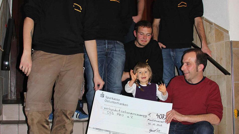Als die Jungs von der Burschenschaft Maroldsweisach ("da waren unsere Opas schon dabei") von Lottas Schicksal erfahren hatten, wollten die 20 Mitglieder "neben dem Klassiker Kindergarten", so Moritz Werb (20), diesmal die Interessensgemeinschaft PKU unterstützen, um damit auch der dreijährigen Lotta, Tochter des ehemaligen Mitgliedes Ralf Geiger, zu helfen.