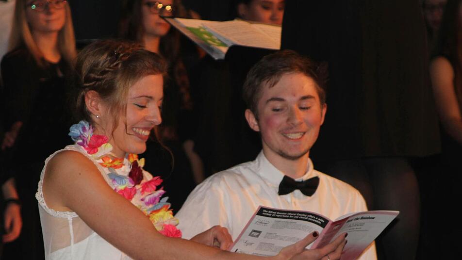 "Grease" oder "Dirty Dancing" erklangen. Auch der Beach-Boy-Klassiker "Barbara Ann" oder "For the longest time" standen dem nicht nach. Überraschenderweise folgten melancholische Akzente. Moderator Jens Rautner verriet den Hintergrund. "Cantarella" singt jetzt auch bei Hochzeiten. "Ihr dürft euch deswegen jetzt auch in die Arme nehmen, melancholisch werden und die nächsten Stücke genießen." "Küss sie doch" aus dem Disney-Trickfilm passte da bestens. Weiter ging es mit dem Filmsong "The rose" und "Ein Kompliment" von den Sportfreunden Stiller. Ja, die jungen Sänger verstehen es sehr wohl, gute Komplimente zu machen: "Du bist meine Chill-Out-Area, meine Feiertage in jedem Jahr, meine Süßwarenabteilung im Supermarkt und die Lösung, wenns mal hakt."