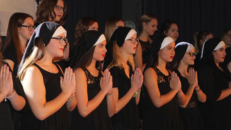 Rückblick: Der Jugendchor der "Sängerlust" war 2007 und damit vor knapp zehn Jahren gegründet worden. "Wir hatten damals noch eine ganz andere Besetzung mit zehn bis elf Personen, und alle waren Mädels." Wie die Moderatorin erklärte, wolle man mit ausschließlich weiblicher Besetzung daran erinnern, und so kamen Mädchen in Nonnentracht, um dem fetzigen Gospel-Lied "Joyful, joyful" aus "Sister-Act 2" die richtige Präsenz zu geben.