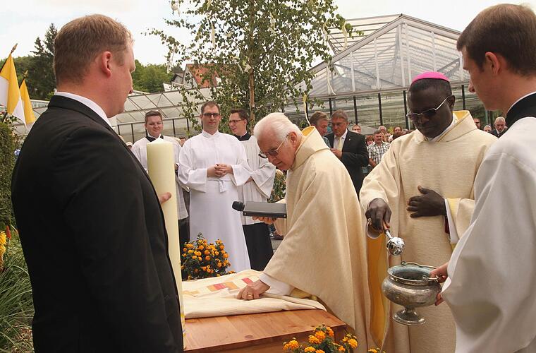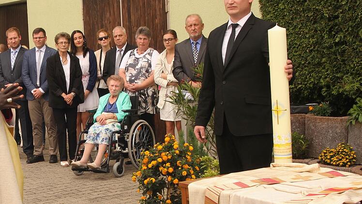 Pfarrer Ewald Thoma betonte, dass ein Priester in einem besonderen Spannungsfeld stehe. "Wenn du jetzt von deinem Elternhaus hinaus in dieses Spannungsfeld gehst, bist du nicht allein. Viele sind mit dir. Das ist der Sinn dieses Weges vom Elternhaus zur Kirche. Möge dich dabei auch die Liebe Gottes begleiten und möge dir das Licht Christi für immer deinen Weg hell machen." Thoma und Bischof Andre Gueye aus dem Senegal legten Christian Montag das Priestergewand mit Stola um, sein Bruder Andreas Montag gab ihm die Primizkerze.