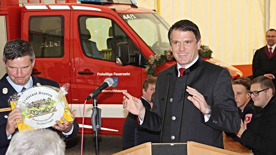 MdL Steffen Vogel (CSU), der selbst viele Jahre in Wasmuthhausen die Feuerwehruniform trug, bezeichnete die Anschaffung des neuen Feuerwehrautos als gute Investition. "Dahoam ist dahoam", könne er, angelehnt an die gleichnamige Fernsehserie, in seinem Heimatort sagen. Deshalb sei er auch sehr gerne gekommen, um sich mit allen in Wasmuthhausen über die Neuanschaffung zu freuen. Feuerwehren seien oft "der tragende Verein" in den Ortschaften.