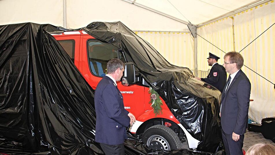"Es ist ein schöner Anlass für einen Bürgermeister, das verpackte Geschenk zu enthüllen und an die Feuerwehr zu übergeben", sagte Bürgermeister Wolfram Thein (SPD). "Unsere Feuerwehr ist es uns Wert, sie gut auszustatten, für die Sicherheit unserer Mitbürger. Dazu gehört auch die notwendige Neuanschaffung des Feuerwehrautos." Die Feuerwehr in Wasmuthhausen spiele, wie alle anderen Feuerwehren eine zentrale Rolle in den Ortschaften. "Das neue Auto kostet mit Ausstattung des Digitalfunks 95 000 Euro, eine stolze Summe, die gut investiert ist", sagte Thein. Der Bürgermeister zeigte die Schritte auf, die bei der Neuanschaffung nötig waren.