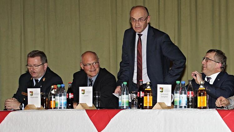 Bei den Aufgabenschwerpunkten seien, so Wilhelm Schneider, die fachliche Qualifikation und die Vereinbarung der Tätigkeit mit dem Beruf ausschlaggebend, sagte Schneider und schlug Ralf Dressel zur Wiederwahl als Kreisbrandrat vor. Schneider erinnerte an den beruflichen Werdegang und seine fachliche Qualifikation. "Ralf Dressel ist seit 2011 als Kreisbrandrat tätig und hat sich in dieser Funktion bewährt", betonte der Landrat. Das Vorschlagsrecht zur Wahl des Kreisbrandrates liegt nach dem Bayerischen Feuerwehrgesetz bei ihm. Die Meinung der Feuerwehrleute im Landkreis sei ihm aber auch wichtig, und er endete: "Ich weiß, dass es im Vorfeld einige Diskussionen gegeben hat, Gelegenheit zur Aussprache besteht nach dem Bericht des Kreisbrandrates." Dementsprechen wurde später gefordert bei künftigen Entscheidungen die Basis, sprich Gemeinden und Ortsfeuerwehren einzubeziehen; auch technische Probleme mit der Integrierten Leitstelle (ILS) wurden angesprochen.