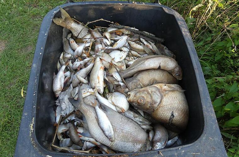 Tote Fische sinken auf Grund und treiben später an Oberfläche