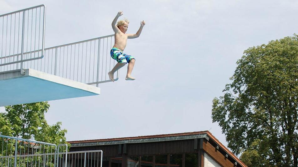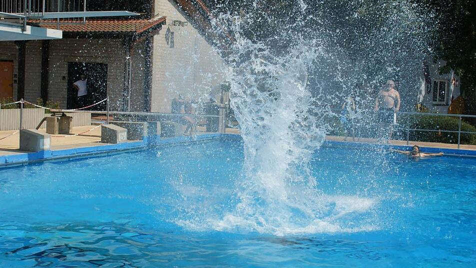Wenn schon sportlicher Wettkampf, dann im kühlen Nass, das dachten sich die Teilnehmer am zweiten "Arschbombenwettbewerb", den die Bayerische Sportjugend (BSJ) Haßberge im Eltmanner Freibad veranstaltete. Um die 30 Kinder und Jugendliche beteiligten sich an dem lustigen Wettspringen, das auch bei den Zuschauern für gute Laune sorgte.