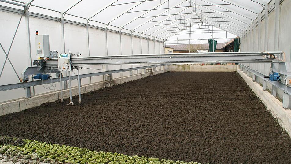 In der Klärschlammtrocknung der Gemeinde Stettfeld arbeitet der "Keiler". Diese Maschine ist ein Prototyp und wendet den Schlamm. Die neue Variante verspricht der Kommune einiges an Kostenersparnis.