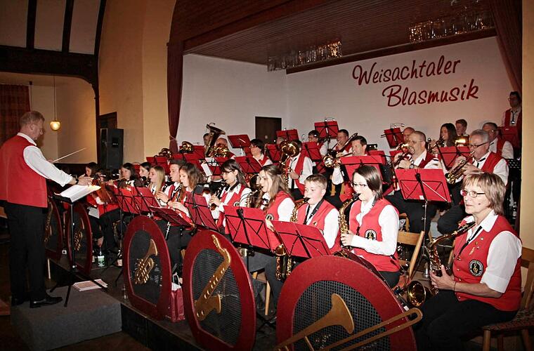 Im fast vollbesetzten Hartlebsaal sagte der Vorsitzende der Weisachtaler Blasmusik, Stefan Hofmann: " Wir spannen einen musikalischen Bogen vom Konzertmarsch über Polka hin zu Medleys und klassischen Melodien, aber auch zur Pop- und Rockmusik" Dass die Nachwuchsmusiker diesmal nicht eigens vertreten seien, habe den Grund, das ein Großteil der jungen Musiker in die Hauptkapelle eingebunden wurden.