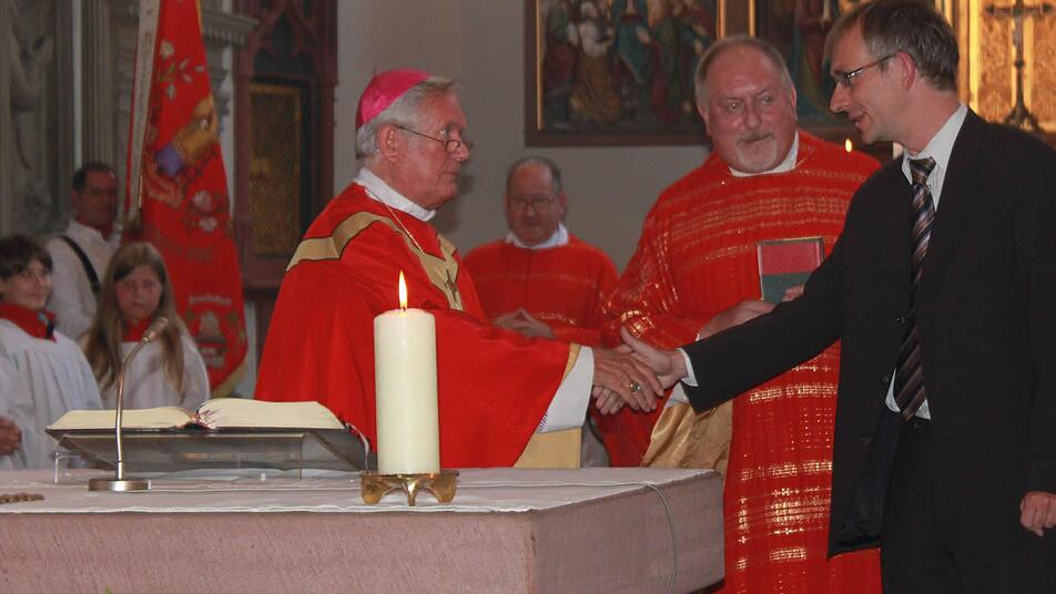 So ein Bischof zum Anfassen ist halt doch etwas Seltenes. Auch wenn er, wie Pater Rudolf Theiler feststellte, etwas länger gebraucht hat, bis er endlich den Weg an die "Ostfront" seines Bistums gefunden hatte. Umso erfreuter war der Stadtpfarrer, dass die Zusage zum Patrozinium so schnell und spontan erfolgte.