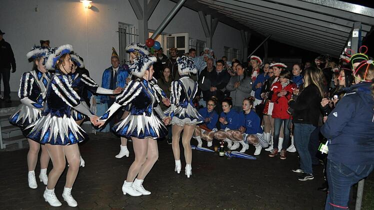 Zuvor hatte er sich eine rote Kutte umgeworfen und einen roten Feuerwehrhelm von dazumal aufgesetzt und ritt als Martin auf einem Steckenpferd voran. Er führte den Zug an, der zusammen mit der Prinzengarde, dem Prinzenpaar in einem Cabrio, der Blasmusik Kraisdorf und einem Faschingswagen der Jugendlichen zum TSV-Sportheim führte. Dort tanzte die Prinzengarde erstmals ihren Gardetanz, begleitet mit viel "Pfarrweisach: Helau!", und ebenso viel Applaus.