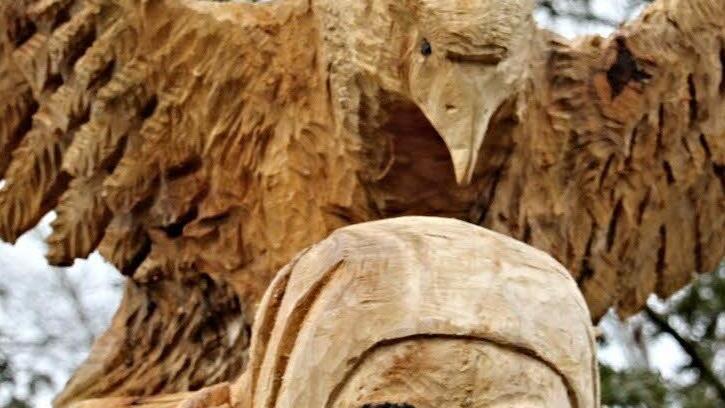Ebern nicht, aber gekürzt mussten sie werden, um die Verkehrssicherheit zu gewährleisten. Die Idee der Stadt im April 2016: Ein Gestaltungswettbewerb, aus Baumstümpfen etwas zu schaffen, zu dem alle Hobbykünstler aufgerufen wurden. Das hat Forstmann Ponader dazu inspiriert, an einem Baumstumpf die Säge anzusetzen. Daraus entstand in etwa 50 Arbeitsstunden die Skulptur "Adlerbaum."