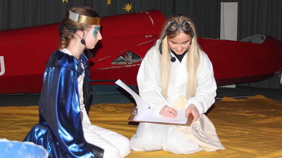 Wie ganzheitlich das Schulprojekt angelegt war, belegt die Tatsache, dass die Aufführung weitgehend im Nachmittagsunterricht der Ganztagesklassen der Stufen 5 bis 7 einstudiert wurde. Das Bühnenbild bastelten die Praxisklassen in ihren Stunden am Berufsförderzentrum und sogar ein 8,60 Meter langes Flugzeug war herangekarrt worden. Im Tonstudio hatte Martin Scherbaum mit zwei Helfern alles unter Kontrolle, was bei dem enormen technischen Aufwand mit Verfolgerspot, Einspielungen und den vielen Raum-Mikrofonen kein leichtes Unterfangen war.