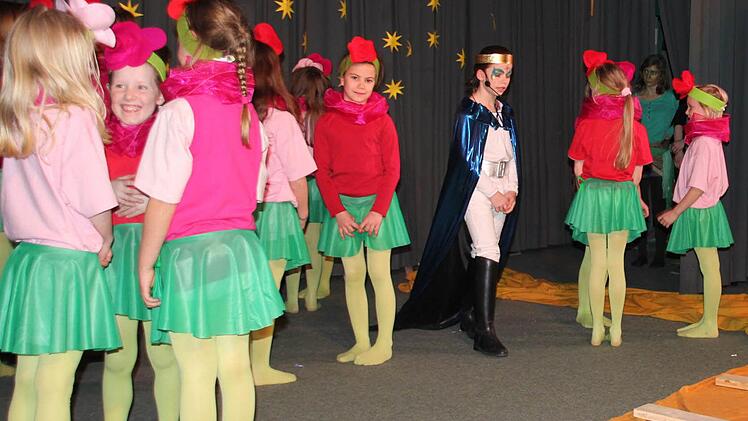 Dominik Leimeister, der zusammen mit Marianne Andres Regie führte, hatte schon im Vorfeld um Nachsicht gebeten, wenn eine Kulisse mal in die falsche Richtung geschoben werden sollte. Doch all diese Befürchtungen erwiesen sich als unbegründet: Ohne Hänger beim Text, ohne falschen Ton und immer im richtigen Scheinwerferlicht spulten die Akteure das Programm ab, wobei die Verstärkung aus der Grundschule als Blumen und eifrige Laternenanzünder aus unterschiedlichen Kulturkreisen aufmarschierte. Die ausdrucksstarke Alina Langbein meisterte eine Sprechrolle souverän. Die Leitung bei der Grundschul-theater-Gruppe hatte Birgit Finzel.