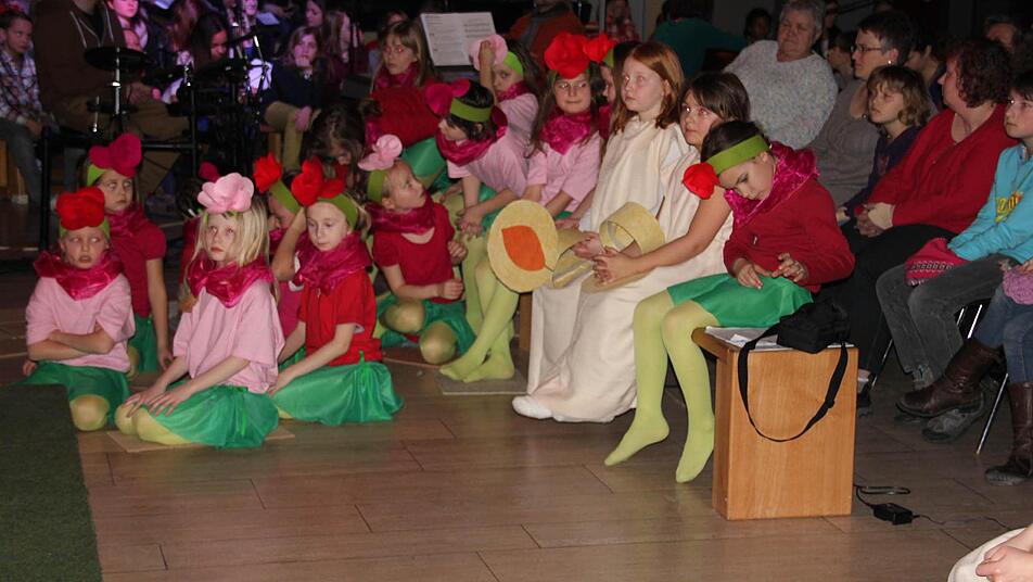 Musikalisch waren die Orffgruppe der Grundschule unter Leitung von Jutta Helbig und der Mittelschulen-Chor unter Leitung von Philipp Arnold, der auch das Keyboard bediente und von Alex Klein am Schlagzeug unterstützt wurde, im Einsatz.