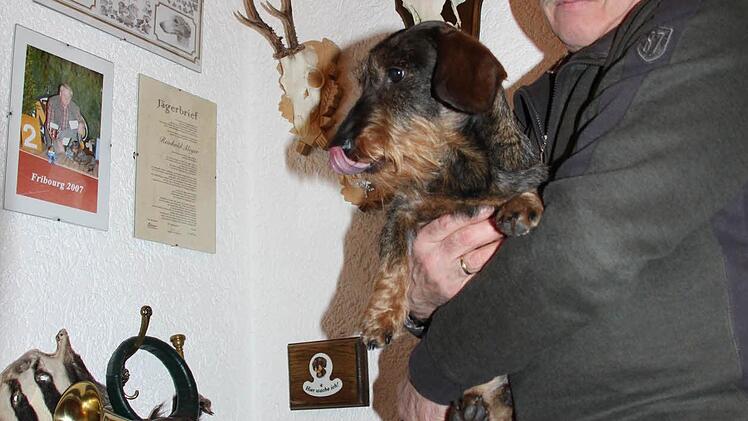 "Wir haben sämtliche Welpen im Umkreis von 300 Kilometern schon angeschaut, aber vergleichen halt alle mit unserem Gero", fasst Irmi Meyer die bislang vergebliche Suche zusammen. Und Reinhold schwärmt von einem "Glücksfall: "Er ist ein hervorragender Jagdhund, der sämtliche Prüfungen des deutschen Teckelclub durchlaufen hat und aufs Wort hört." Ursprünglich als Schweißhund für die Jagd in einem Zwinger im Raum Rödental namens Nonnenschlag erworben - "er wollte uns, nicht wir ihn, weil er uns ständig nachgelaufen ist"- überzeugte er die Juroren durch sein Erscheinungsbild.