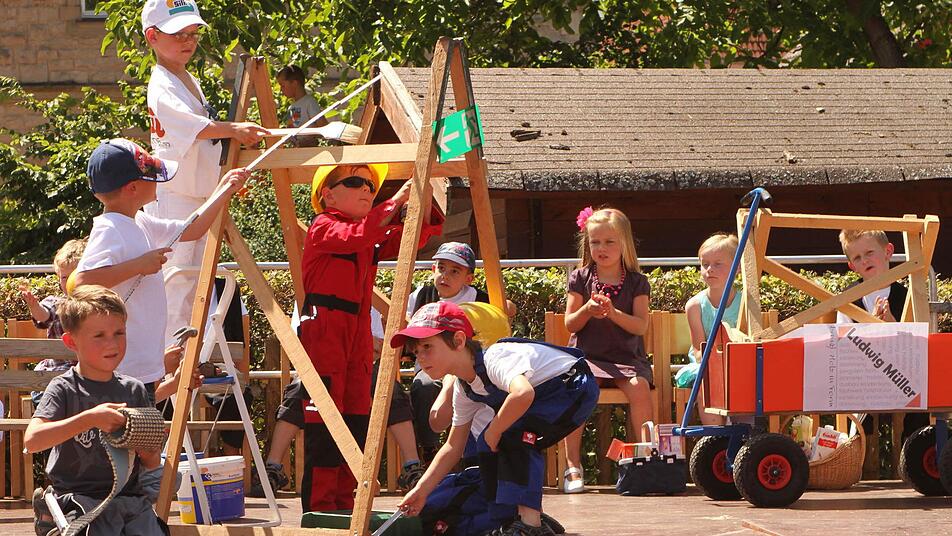 "Der Umbau beginnt" hieß es beim Sommerfest des Städtischen Kindergartens "Kunterbunt" in Eltmann. Kinder, Erzieherinnen und Eltern waren aber froh, dass der Umbau schon herum ist. Alle feierten den Abschluss der Bauarbeiten und die Einweihung der neuen Kinderkrippe.