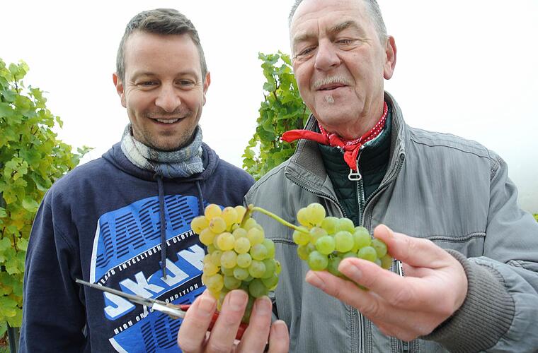 Da steht er oben am Hang, tritt auf den jungen Ziegelangerer Winzer zu und hält ihm stolz einen Träubel hin: "Das ist die ,Schulter‘" In der Winzer-Sprache ein natürlicher Abzweig an der Träubelform, wie Moßner demonstriert. Der Träubel ist nicht geschlossen, an einem längeren Arm haben sich weitere Trauben in kleiner Träubelform angesetzt. "Faszinierend!"