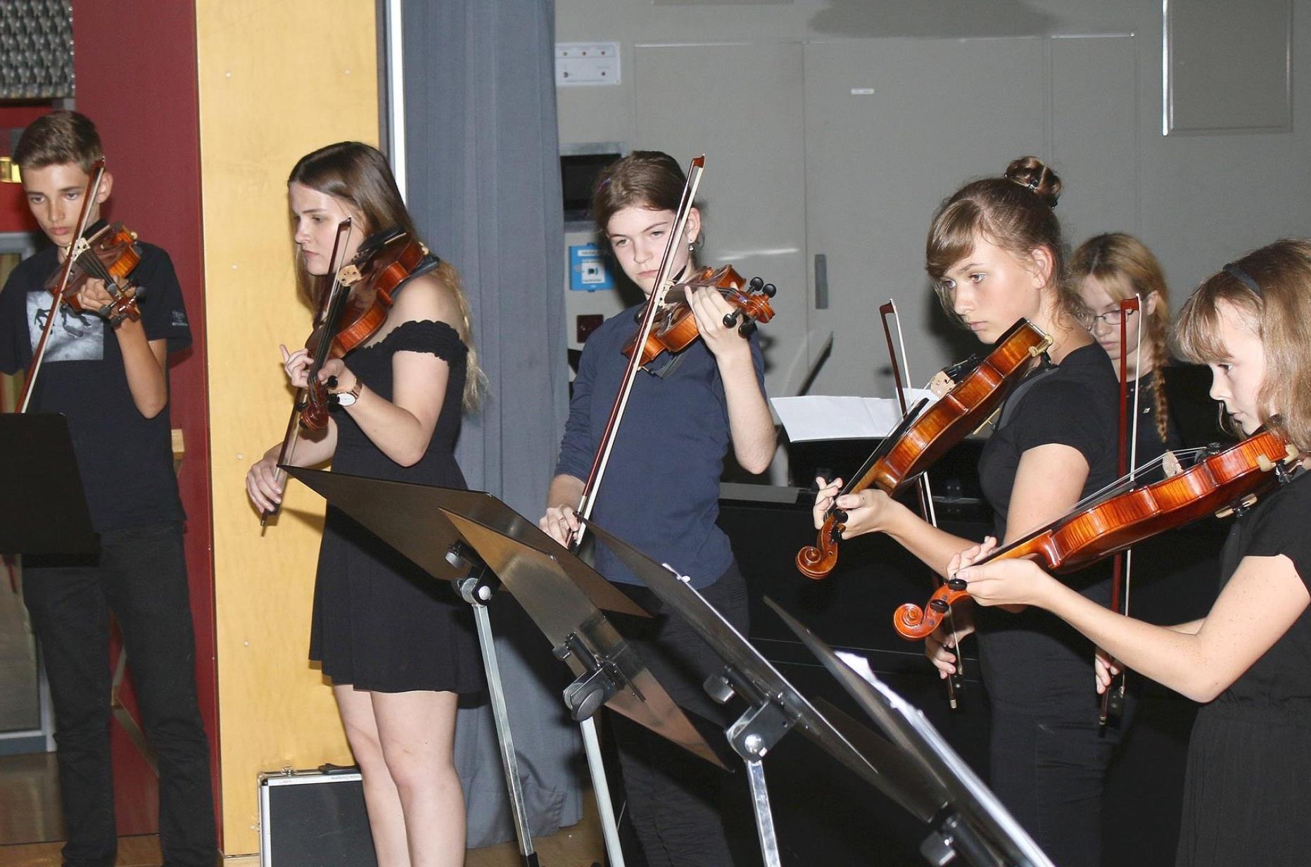 "Christofori's dream" von David Lanz brachte das von Marina Andreewa geleitete Streicherensemble, unterstützt von Daniel Fritz aus der Klasse 9a am Klavier, zu Gehör, während der Musicalchor "Junge Stimmen" (Leitung Matthias Göttemann) mit "Amazing grace" und "Halleluja" erfreute. Das Flötenensemble (Petra Schlosser) glänzte mit dem "Menuett" von F. J. Giesbert sowie "Dreaming" von Louis Moyse, das Schulorchester (Wioletta Baumgartner-Sauer) zum einen mit "Der Frühling ist gekommen" und "Tanz der Hirten" aus den "Vier Jahreszeiten" von Antonio Vivaldi. Zudem mit Rolling in the Deep" sowie dem Hit der 80er, "Final Countdown" der schwedischen Hard-Rock-Gruppe "Europe".
