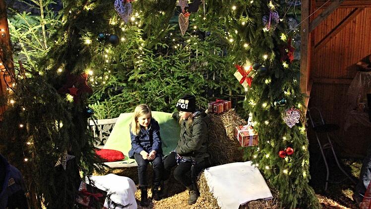 In der Mitte loderte, wie es sich für eine Burg gehört, ein Lagerfeuer, um welches sich die Menschen scharten, miteinander ins Gespräch kamen und die leckeren Sachen genossen. Auch der Nikolaus fehlte nicht, der im Anschluss an weihnachtliche Klänge des Posaunenchors Ermershausen unter Leitung von Alexandra Eiring, die Kinderaugen leuchten ließ.