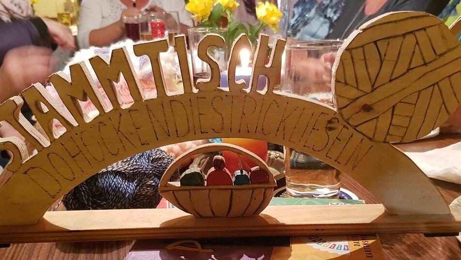 Fünf Jahre ist es her, Elfriede Kraus winkt mit dem Original, als sie ein Briefchen für alle Limbacher Haushalte verfasste, die den Start einer "neuen Strickrunde" verkündete: Fast auf den Tag trafen sich tatsächlich etliche Frauen in der Dorfmitte. Ihre "Lichtstube" beim Ehepaar Salim gestalten die Limbacherinnen seither derart herzerfrischend, dass selbst im Sommer der Donnerstagabend nur ein Ziel kennt. Wenn die Frau aus dem Haus geht, will der Mann natürlich wissen, was sie treibt: So findet sich auch ein Tisch mit Kartlern im Gasthaus ein, wo fleißig geklopft wird. Keine Frage, dass zwischen den beiden Tischen (der der Frauen ist größer) die Sprüch' nur so hin und her fliegen, aus dem Lachen und Schwatzen kommen sie gar nicht heraus. "Die Stricklieseln" haben sogar ein eigenes Stammtischschild verehrt bekommen. Trotzdem, am Tisch der Frauen, "da dürfen keine Männer her", ruft eine übermütig. Die Jüngste, Gabi, ist 55, die Älteste, Ida, "die Zuverlässigste", ist mit ihren 84 Jahren jeden Donnerstag dabei und strickt Socken. Auch Charlotte lass ihr gegenüber das Nadelspiel klappern. Ein bisschen Lästern muss sein. Hebt die eine stolz ein rosa Babykäppchen in die Runde, so ruft es aus der anderen Ecke: "Na, als Badehaubn kannst sa verkaaaf!". Die Edith, die hat immer ihr Tablet dabei und liest manch Aktuelles vor. Elfriede wiederum hebt stolz ihr Werk ins Licht: "Häkeltaschen statt Plastik!" Für den Termin mit der Zeitung hat sich Agnes heute beeilt: Die Mesnerin ist bei jedem Wetter unterwegs, um die Wallfahrtskirche auf- und zuzuschließen. "Jetzt mit dem E-Bike geht's ratzfatz", lacht sie. Maria aus Eltmann sagt etwas, das sie alle unterstreichen: "Donnerstag sind wir immer jung! Ich freu' mich jede Woche drauf."