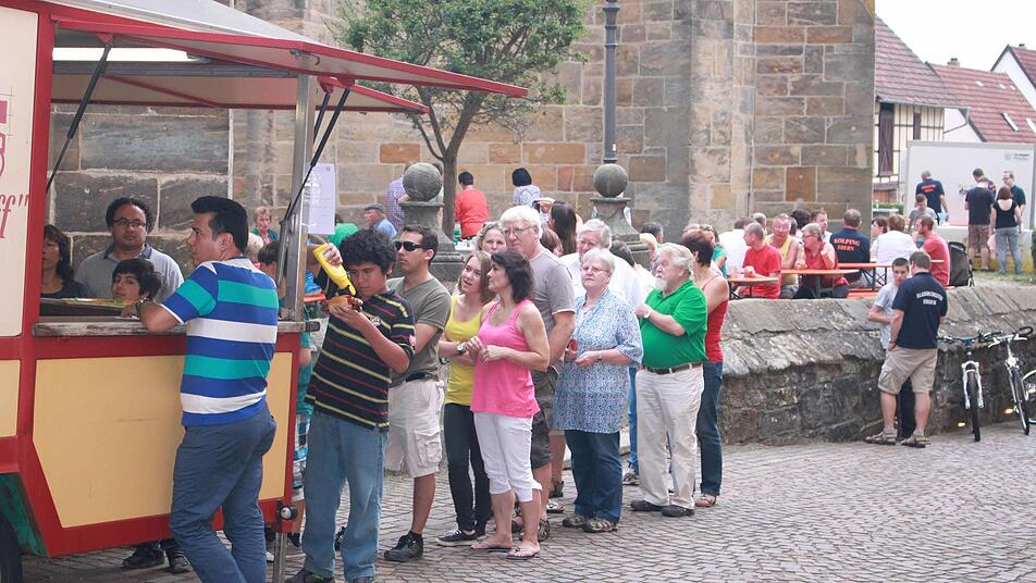 Zwar will keiner seinen Namen in der Zeitung lesen, aber so oder ähnlich drücken es viele aus. Gemütlich, klein, nettes Ambiente im Schatten der Stadtpfarrkirche und vor allem endlich einmal wieder die Gelegenheit, sich auf einem Fest mit dem Gegenüber unterhalten zu können, ohne sich dank lauter Musik anschreien zu müssen. Das sind die Gründe, warum den Ebernern ihr Laurenzifest so gut gefällt. Und nicht nur mit den anderen Festbesuchern kann man sich gut unterhalten. Auch am Getränkeausschank oder an der Bratwurstbude ist immer Zeit für ein kleines Schwätzchen mit den Helfern.
