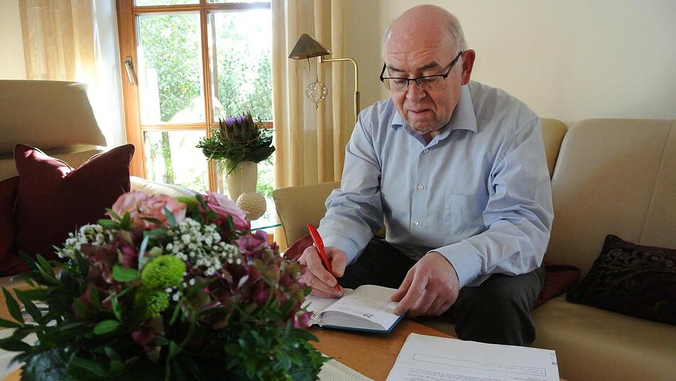 Am Lieblingsplatz Sofa im lichtdurchfluteten Wohnzimmer liegt der Terminkalender bereit. Der Fernseher nicht weit. Aber der Typ für lange Filmabende ist Siegmund Kerker nicht. Schon früher hat er sich "die Nachrichten angeschaut, dann bin ich eingeschlafen." Hobbys? Da zuckt Siegmund Kerker die Schultern. "Früher hab ich einmal geschossen" bei den Thereser Schützen, wo er seine spätere Frau Karin kennenlernte. Die beiden "Jungfrauen", vom Sternzeichen her haben sie am selben Tag Geburtstag, fanden sich nicht nur über das Schießen, die beiden sind auch Menschen, die mit Zahlen gut umgehen können - er einst Mitarbeiter im Finanzamt, sie Steuerfachfrau. Das passt, und mit zwei großen Herzen und viel Humor trägt das ein Leben lang.