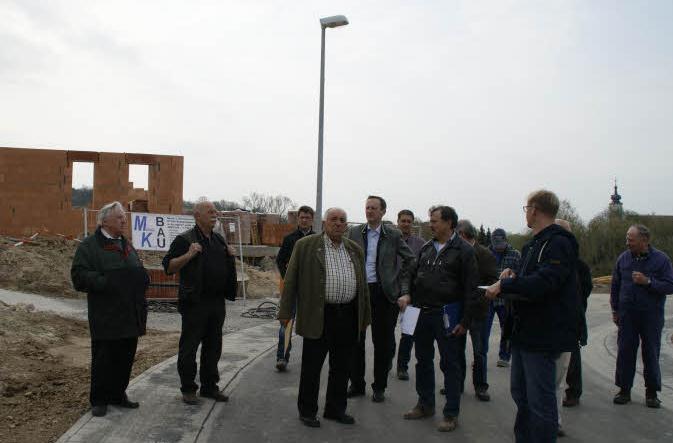Wenige kleine Mängel wurden bei der Abnahme der Straße und der Gehwege im Baugebiet notiert. Besonders freute es die Ausschussmitglieder, dass von einem Haus, das im "Sandwühl" errichtet wird, bereits das halbe Erdgeschoss steht, und für ein zweites Haus die Bodenplatte schon betoniert wurde.