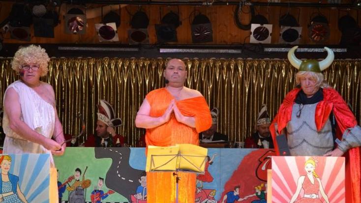 "Als Fasenachter bist du blamiert, wenn weit und breit nichts Lustiges passiert", beschwerten sich die Zeller Originale. Als Liebesgott Amor, Budda und der nordische Gott Thor standen Fritz, Holger und Kilian auf der Bühne. Trotz weniger Themen aus dem Dorf und der Umgebung gelang es ihnen, das Publikum in ihren Bann zu ziehen, und ernteten dafür lautstarken Beifall. Unter anderem mit "Kamasutra" und der Lieblingsstellung der Zeller fanden die Drei trotzdem etwas Amüsantes