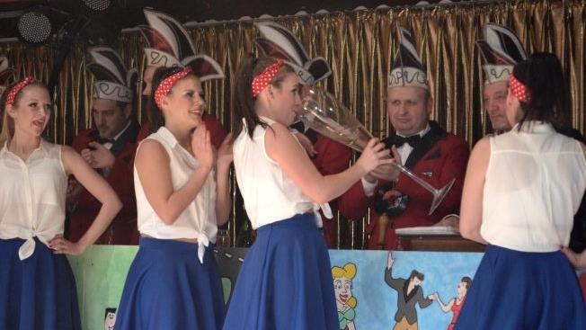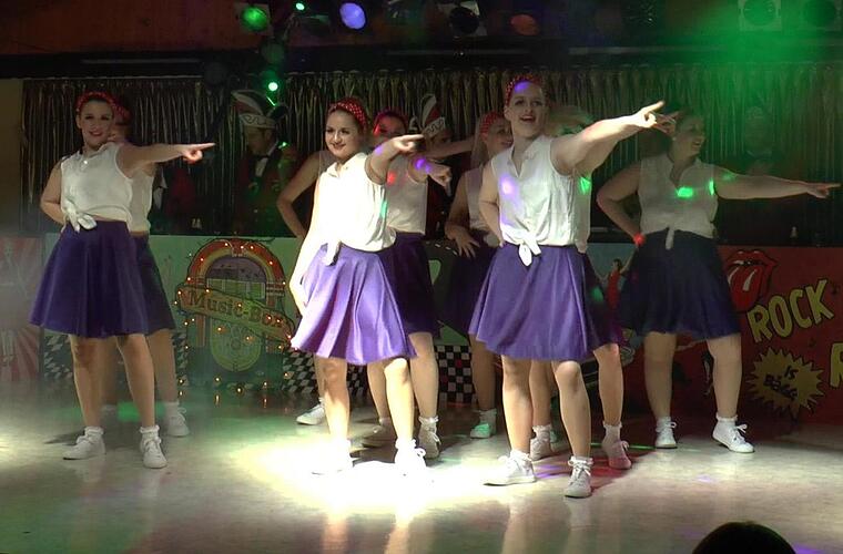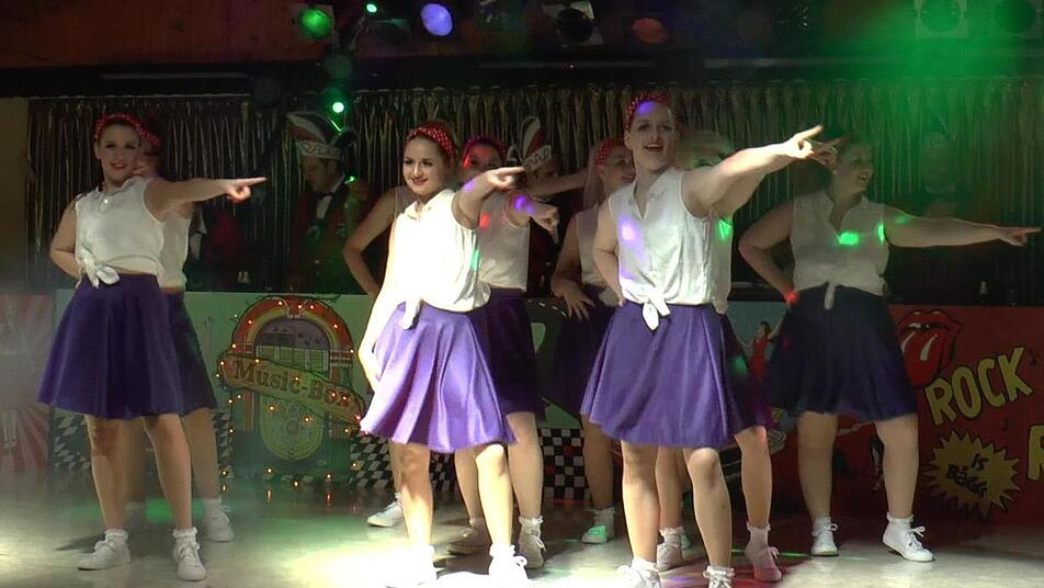 Ganz im Stil des diesjährigen Mottos "Bruns-Verregg - Rock'n'Roll is bägg" präsentierten sich die Zeller Tanzgruppen XYZ und "Black Diamonds". In farbenfrohen Kostümen der 60er Jahre tanzten sie mit einer perfekten Choreografie zu den verschiedensten Rhythmen der damaligen Zeit. Aber auch die Gastauftritte der "Meefischli" und der "Stellinas" des Knetzgauer Carnevalvereins waren Glanzpunkte im Programm. Tanzmariechen Sabrina Hertinger zeigte sein Können.