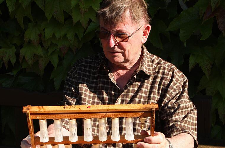 In einem ersten Durchgang habe er schon 57 schlupfreife Königinnen verteilt und habe wegen des großen Interesses an Königinnen noch einen zweiten Durchgang aufgelegt. Dabei sei aber das Wetter sehr bescheiden gewesen. Nachdem er 74 Larven in drei Völker gelegt habe, hätten zwei Tage später nur 42 Larven "angezogen" und am Schluss seien sogar nur 22 neue Königinnen übrig geblieben. Insgesamt habe man aber trotzdem 79 neue Königinnen gezüchtet, die an Imker in Haßfurt, Königsberg, Nassach, Ebelsbach und Gemeinfeld gegangen wären, aber auch in den Bamberger Raum oder gar nach Thüringen.