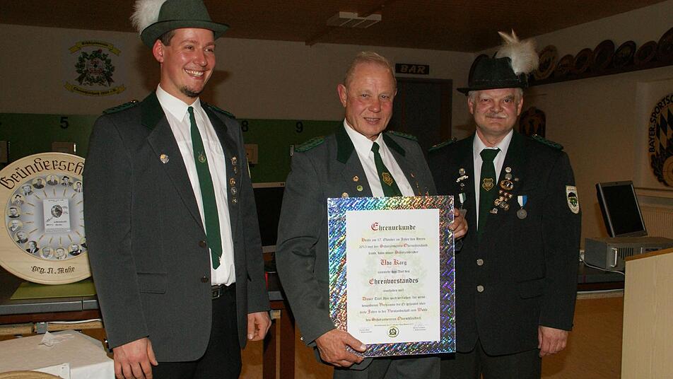 Für langjährige Mitgliedschaft wurden folgende Schützenvereinsmitglieder ausgezeichnet: Tobias Raab und Thomas Karg (zehn Jahre), Gerhard Then, Udo Betz und Jürgen Köhler (25 Jahre), Hans Renk, Klaus Stachelhaus, Herbert Eichhorn, Thomas Bittner, Harald Bittner, Thomas Biermann, Johannes Raab, Ruppert Zenglein, Peter Knop, Friedrich Zenglein, Hubert Karg, Georg Herold und Friedbert Hartmann (40 Jahre) sowie Norbert Appel und Herbert Amend für 50 Jahre Vereinszugehörigkeit.