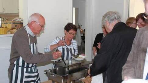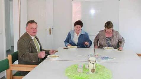 Umso mehr freuen sich die Senioren endlich in "ihrem" neuen Pfarrzentrum wieder ihren Platz zu finden. Nicht gleich einen Platz gefunden haben am Sonntag alle, die den Eintopf essen wollten, den der Architekt spendiert hatte. So wichen die hungrigen Gläubigen sogar in den Jugendraum im zweiten Stock aus, um in Ruhe essen zu können. Auch das Sängerheim und viele andere mögliche Essgelegenheiten haben die Gäste genutzt.